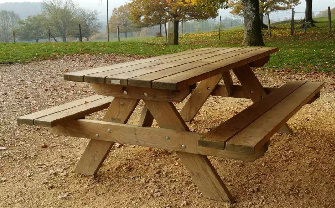 Tables et bancs intemporels, se fondant partout, dans tous les paysages (urbains ou forestiers), pratiques et durables.