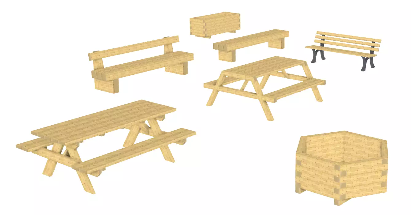 tables, bancs, bacs à fleurs ou signalétique, la gamme estive s'adapte à vos besoins