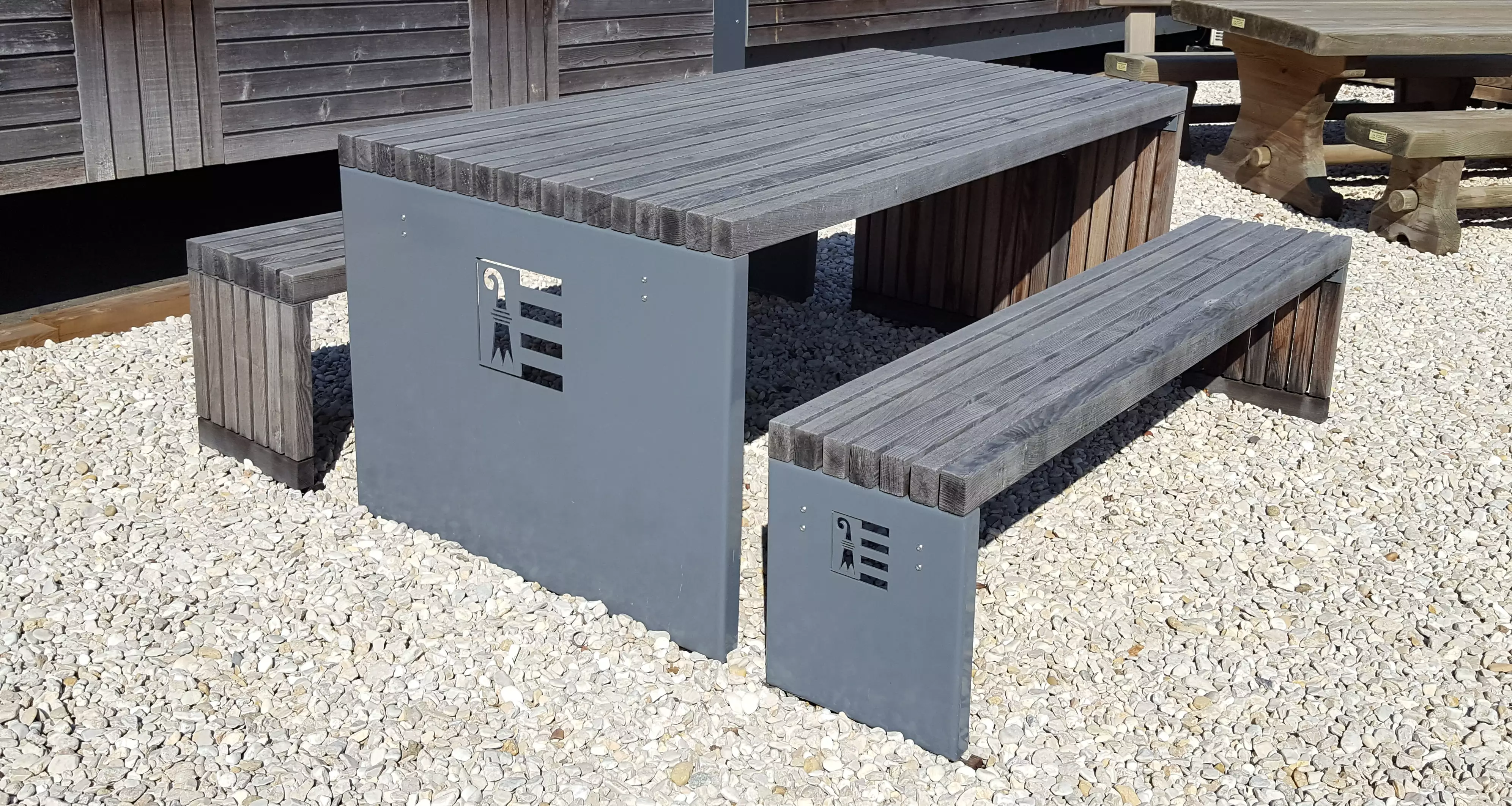 bancs, tables, signalétique : les déclinaisons de la gamme frexo sont multiples