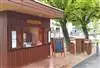 Cabane à crêpe ossature bois, deck de terrasse en chêne imprégnés aux sels CCO + huilé, ainsi que du mobilier en chêne huilé fabriqué sur mesure.