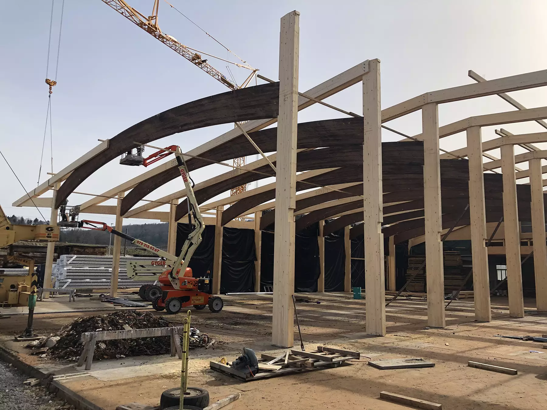 C’est au début des années 1970 que Charly Corbat, père fondateur du HC Ajoie, avait lancé le projet de construction d’une nouvelle patinoire à Porrentruy. Un bâtiment imaginé avec des arches en bois. Une conception atypique pour l’époque, devenue emblématique. En 2019, la patinoire étant devenue vétuste et trop petite, le lieu allait connaître une rénovation complète. Les arches lamellées collées ont été démontées pour laisser place à une nouvelle charpente en bois feuillus. L'avenir des anciennes arches restait ouvert. Malgré 50 ans de bons et loyaux services, leur bon état de conservation n'était pas à remettre en question.