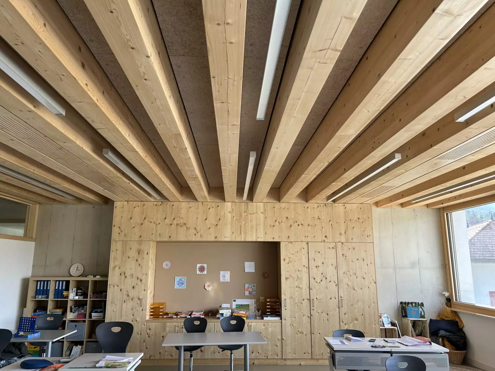 Résultat : un bâtiment scolaire lumineux et accueillant, où le bois trouve toute sa place comme matériau porteur et esthétique, au service d’un environnement d’apprentissage sain, local et durable.