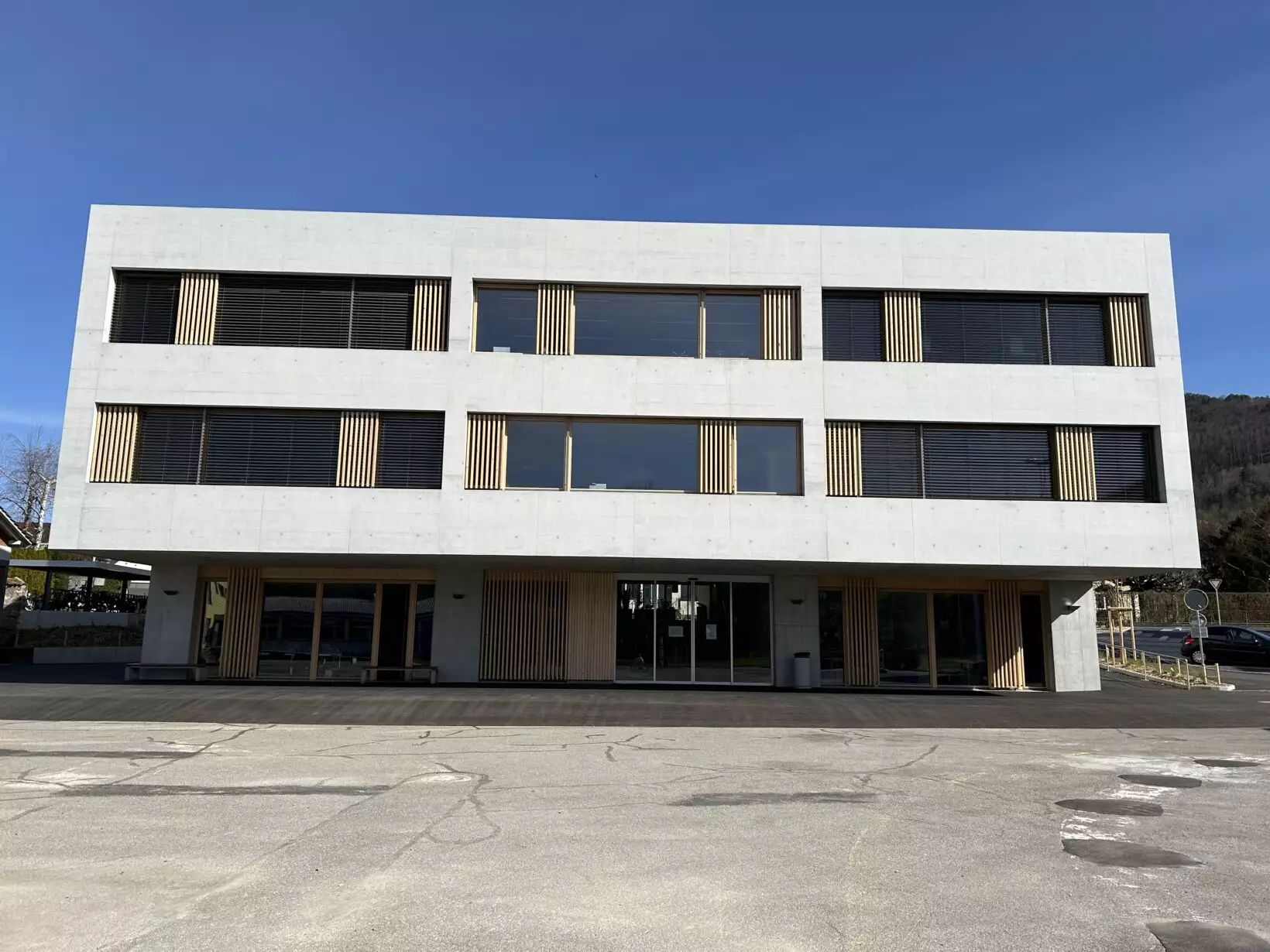 Pensée pour accueillir près de 500 élèves, la nouvelle école de Courrendlin illustre parfaitement la complémentarité entre performance structurelle et chaleur du bois. Conçue selon un principe constructif mixte bois-béton, elle associe durabilité, confort et respect des ressources locales.