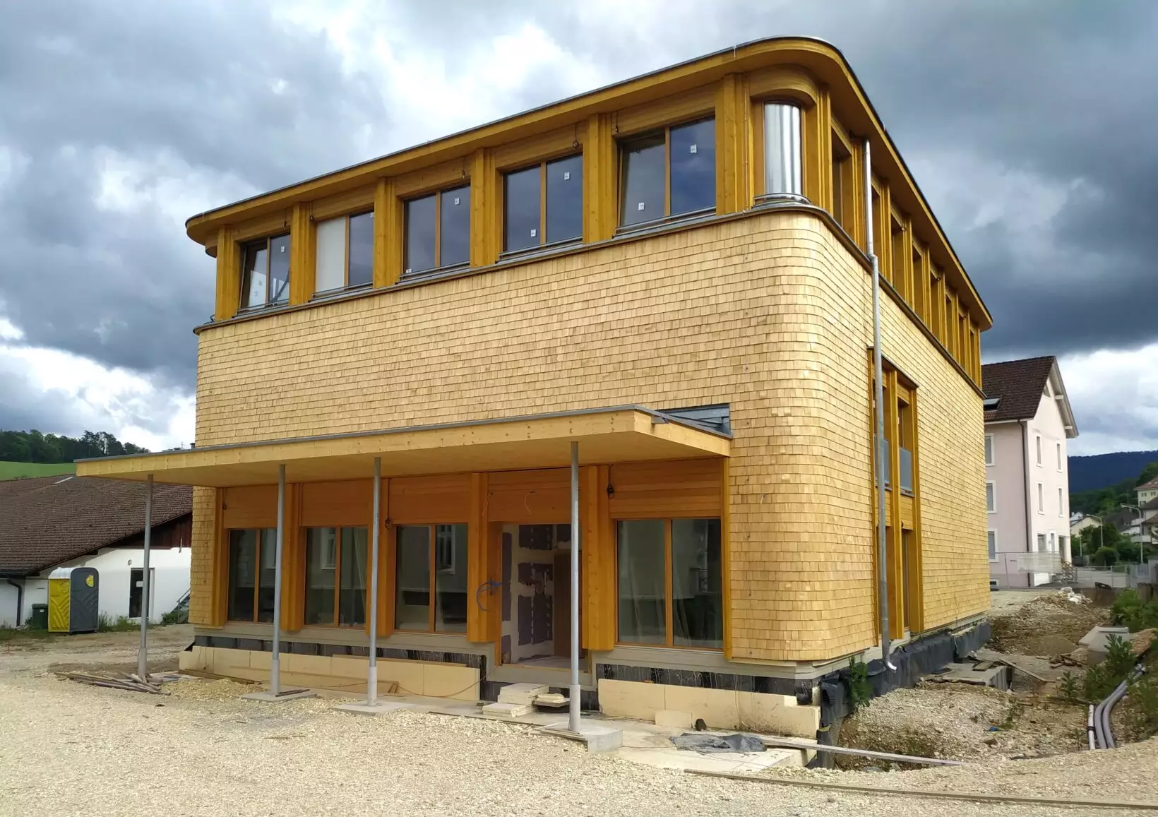 Au cœur de Porrentruy, le nouveau centre Jurassica incarne la rencontre entre science, architecture et valorisation des ressources locales. Construit entre 2023 et 2024, le bâtiment abrite les espaces de recherche et de conservation du patrimoine naturel jurassien. Sa conception met en avant une alliance harmonieuse entre technologie de pointe et matériaux issus de la forêt régionale.