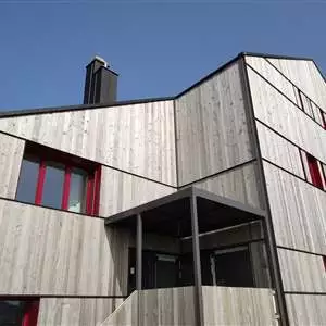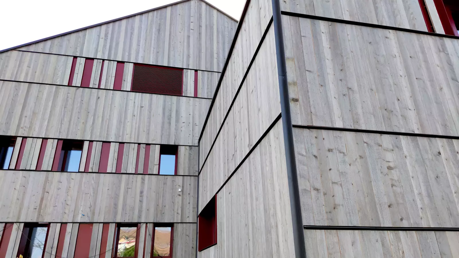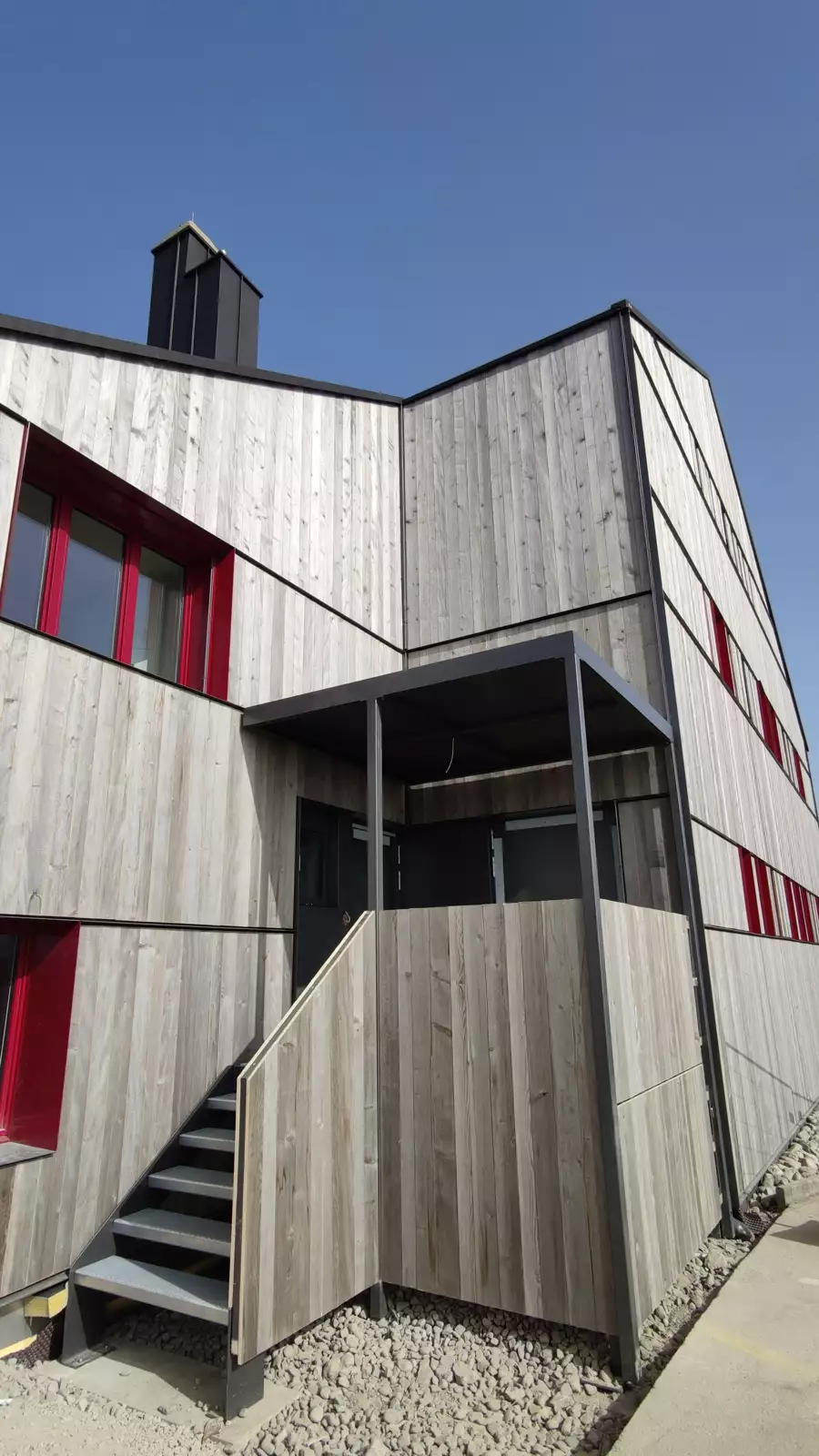 Suite de la demande de l’architecte de revêtir cette salle polyvalente d'un bardage 100% naturel, nous avons proposé notre bardage ECOGRIS®. En effet, les lames ECOGRIS® pré-grissaillées par un procédé naturel sont particulièrement adapté à ce type de bâtiment. Notre bardage obtiendra sa coloration en fonction de l’orientation, du volume architectural et de son emplacement géographique. Sa patine deviendra définitive d’année en année sans devoir l’entretenir. Le bardage a été livré à l’entreprise Facetec qui a réalisé l’isolation ainsi que la pose des lames.
