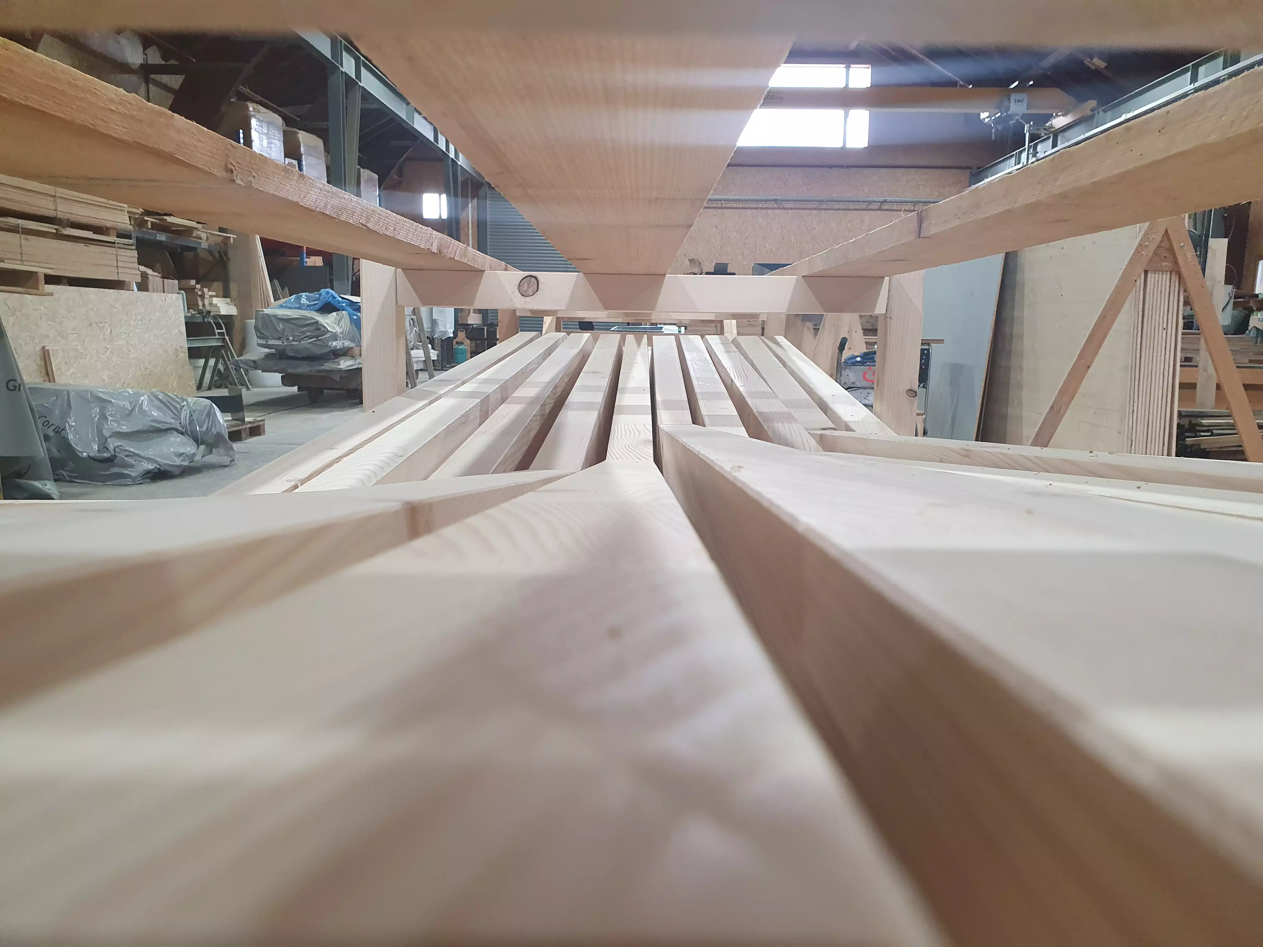 Elle a procédé elle-même à la coupe de cette essence sélectionnée pour ce projet. Le Groupe Corbat a coordonné le sciage des grumes réceptionnées. 650 m3 de sapin ont été transformés non seulement pour la sous-construction, pour les lames de bardage rainé-crêtées et les éléments de bardage organique.