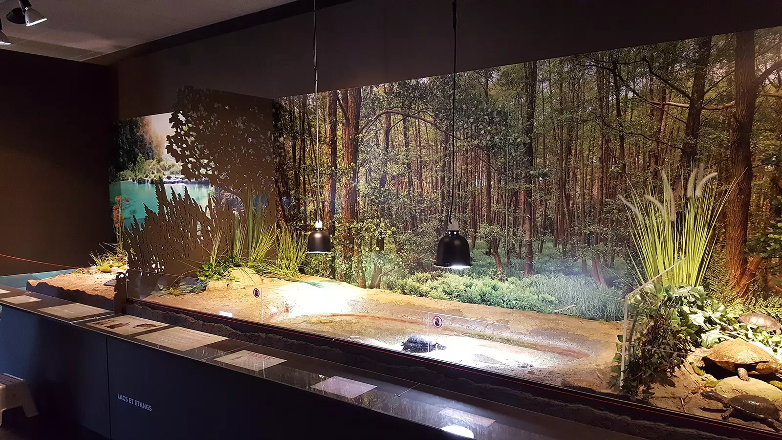 - Conception et création des mises en scène et des décors (reconstitution de différents milieux naturels),