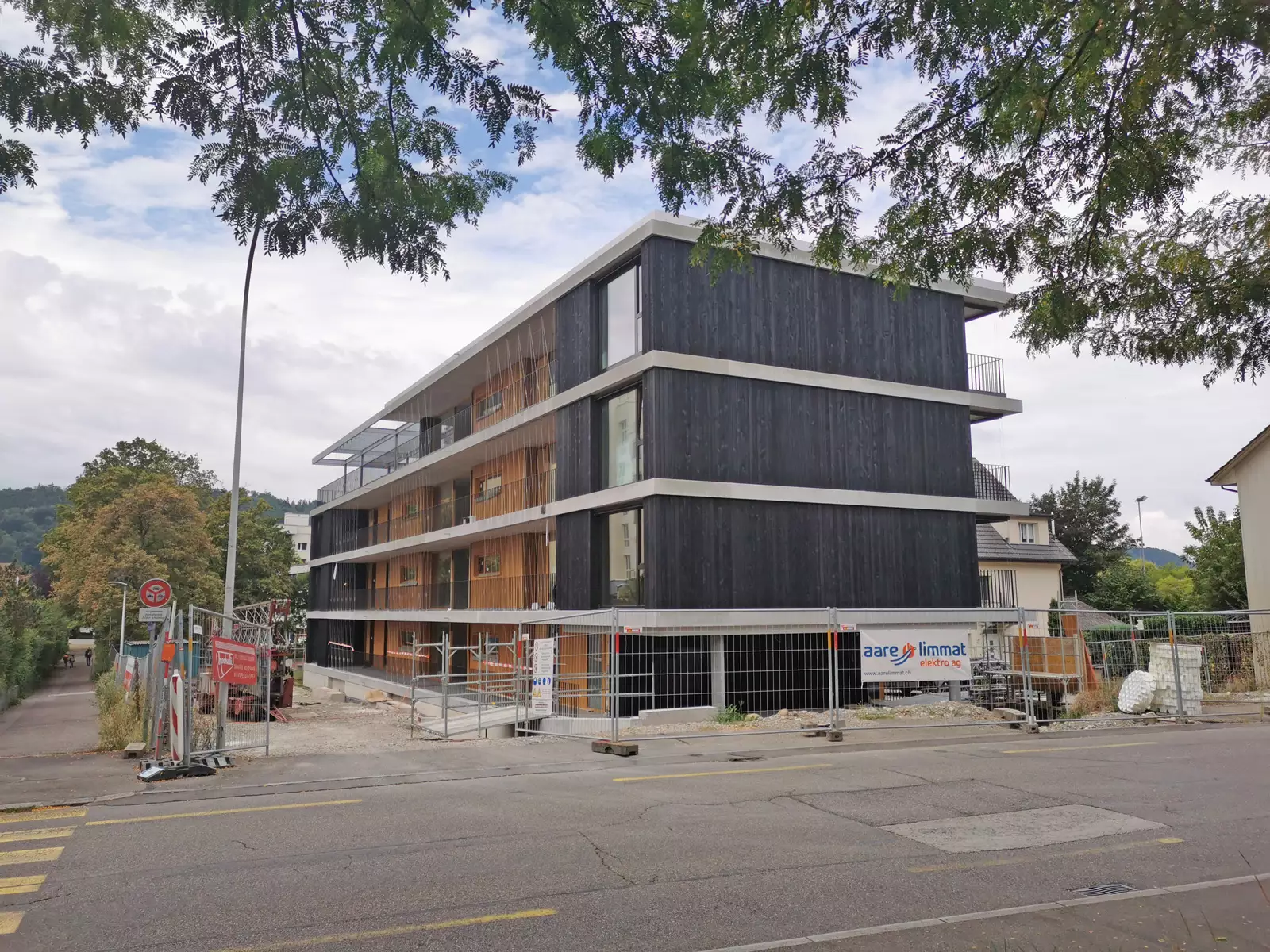 Das Gebäude ist in Hybridbauweise aus Beton und Holz realisiert. Das Untergeschoss, die Wohnungsdecken- und Trennwände sind als Betonkonstruktion ausgeführt und erfüllen schalltechnisch die höchsten Anforderungen.