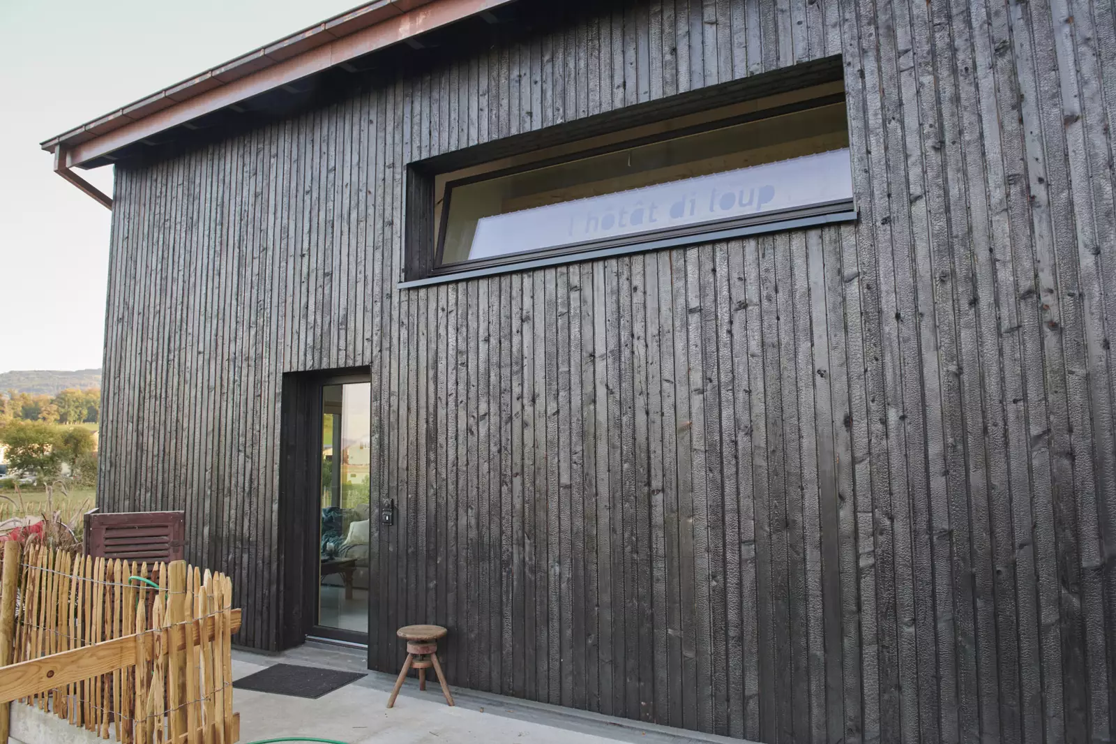 Le choix de l’essence s’est naturellement porté sur du mélèze suisse pour garantir la durabilité. La finition ECONOIR® reptile, fortement brûlée, était une réponse au bardage de « caractère » souhaité par l’architecte et le maitre d’ouvrage.
