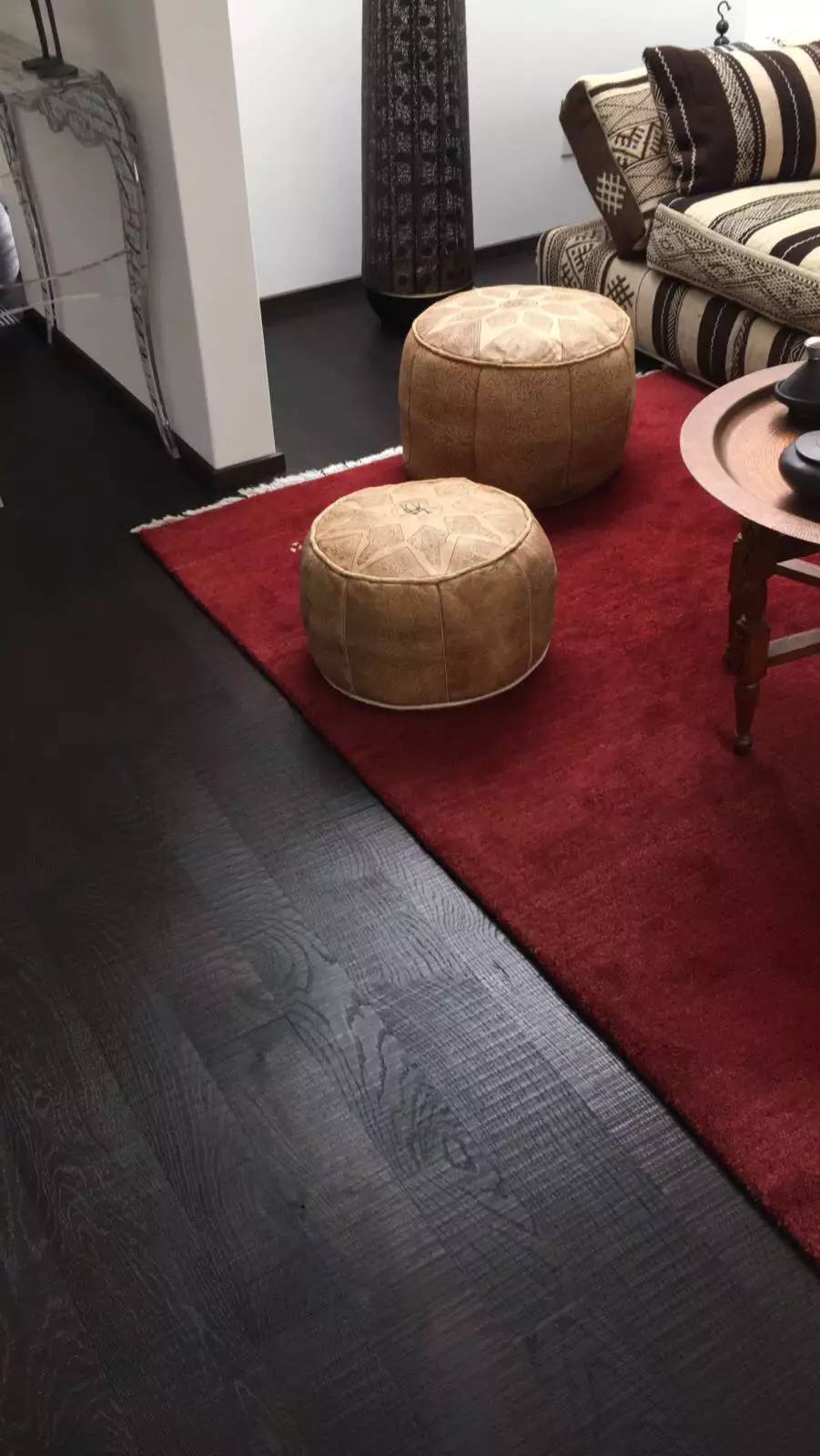 Après sciage et séchage, le chêne a été traité thermique dans nos ateliers à Glovelier. Les lames ont été ensuite usinées afin de garantir une surface « sciage brut » moderne.