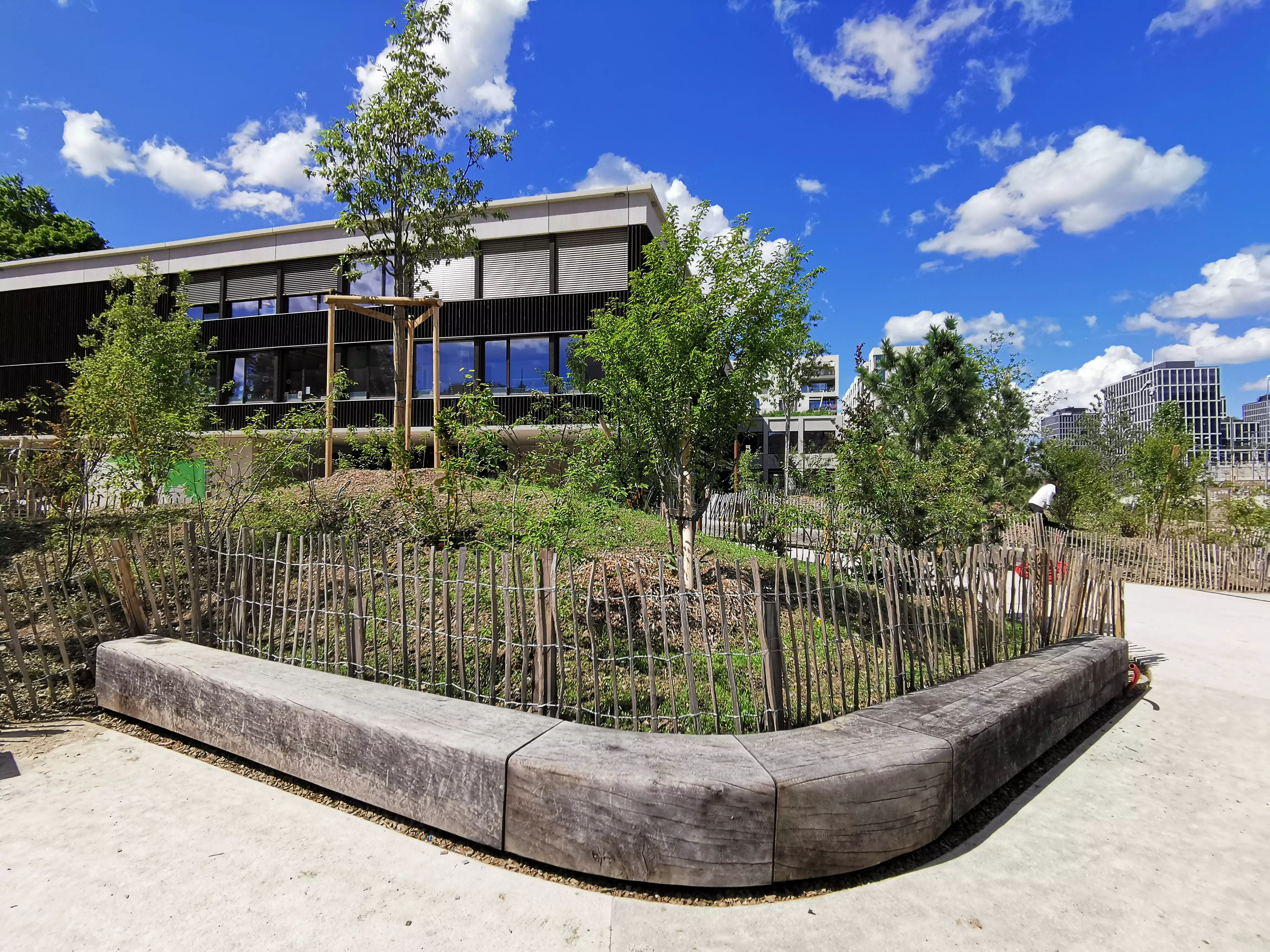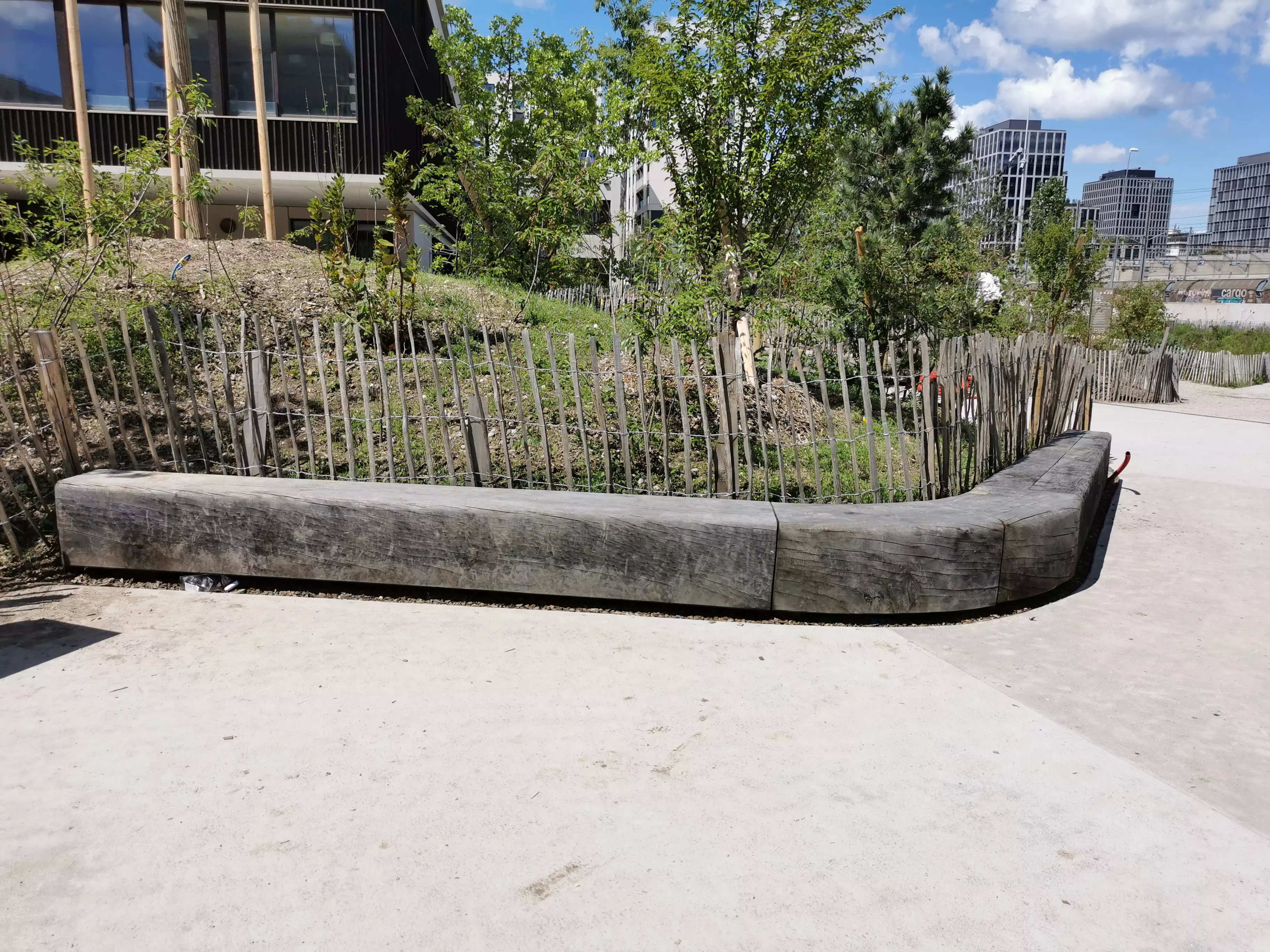 Chaque banc a été modélisé par notre bureau technique pour assurer une parfaite intégration paysagère : des angles et des décrochements permettent de suivre les pentes et de respecter les courbes des cheminements adjacents.