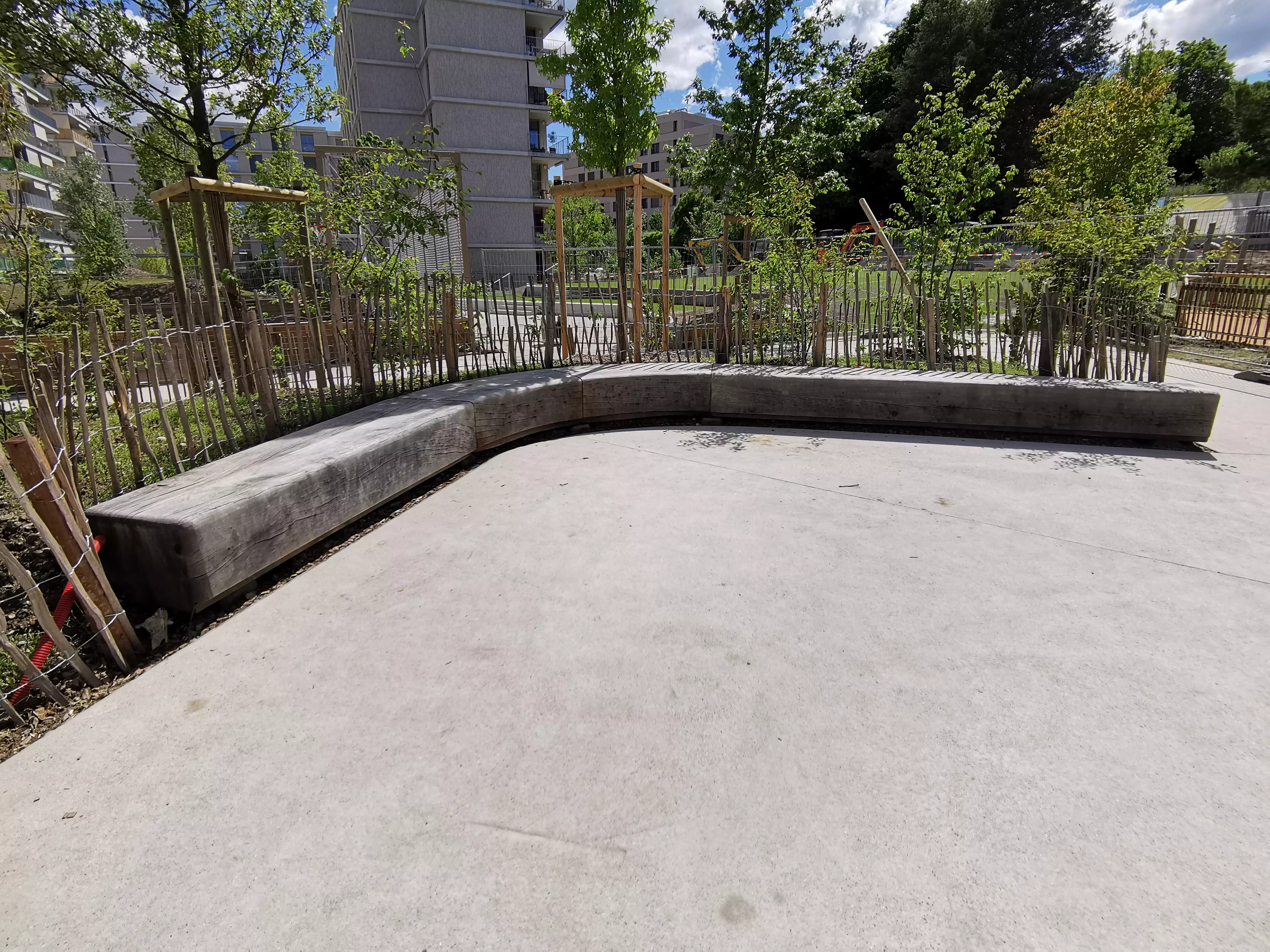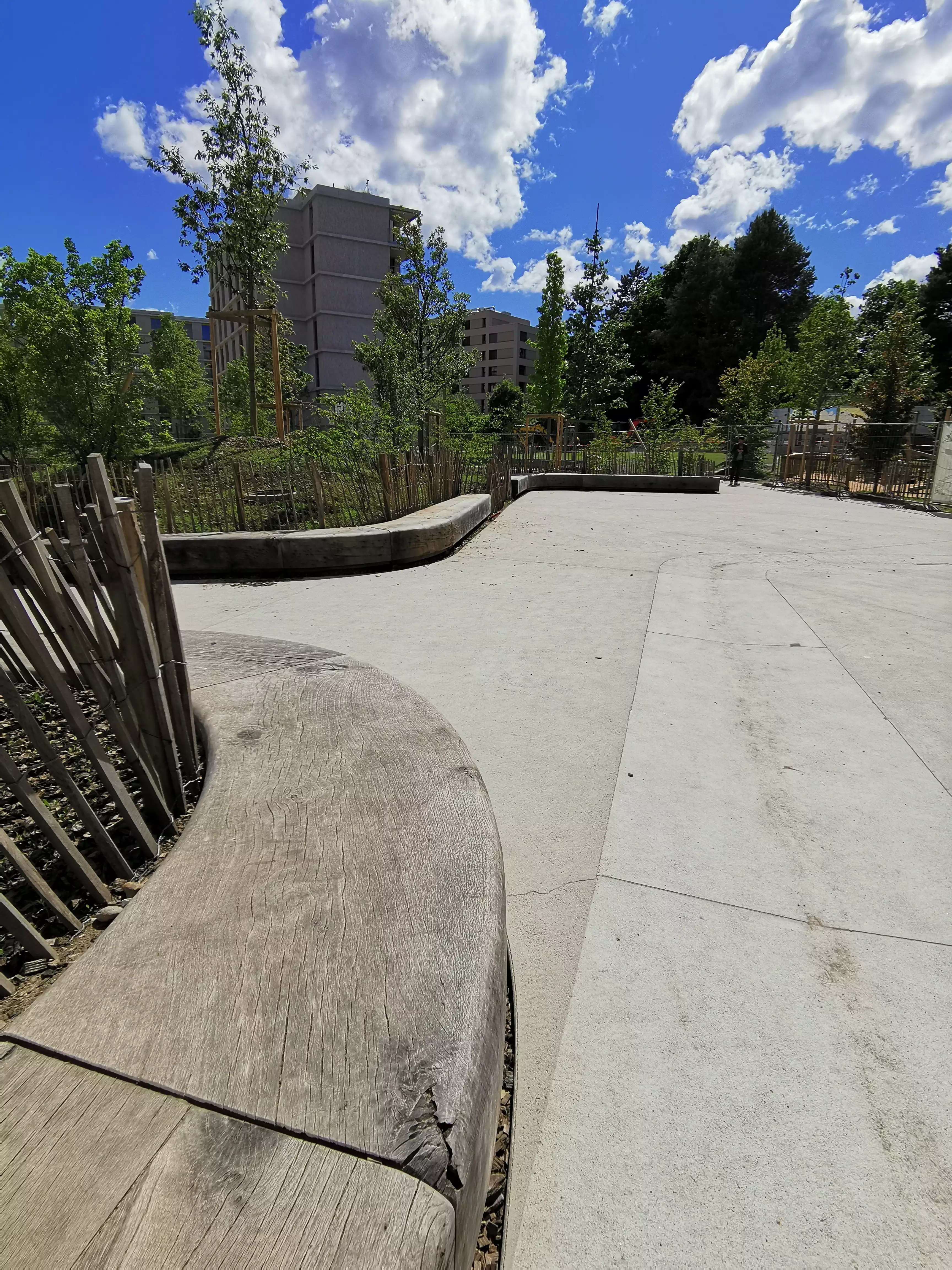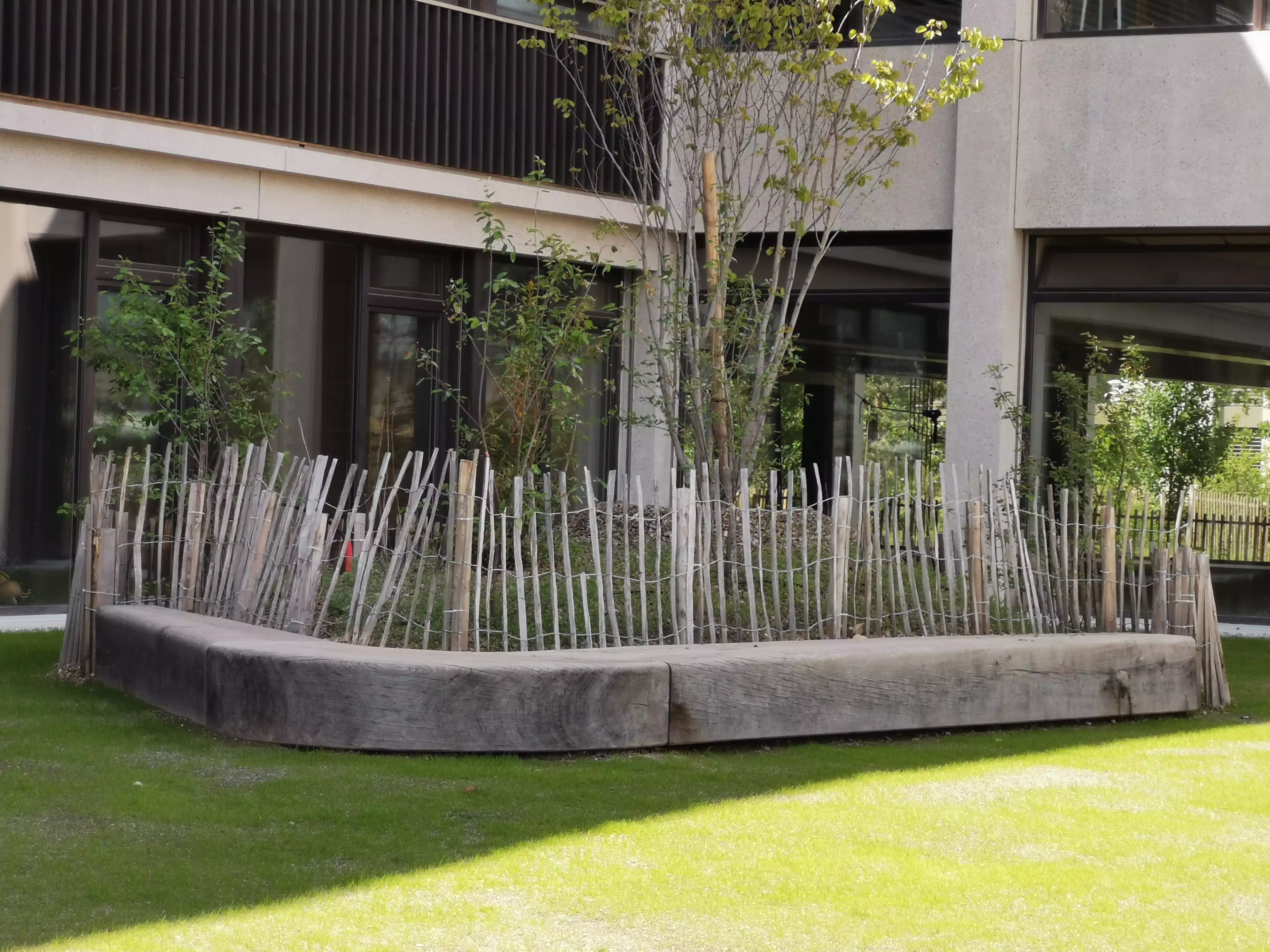 A Lancy, les « boomerangs » prennent la forme de bancs et viennent habiller le préau et le parc de l'école de Lancy Pont-Rouge. Des bancs monumentaux en chêne massif qui nécessitent technique, précision et savoir-faire.