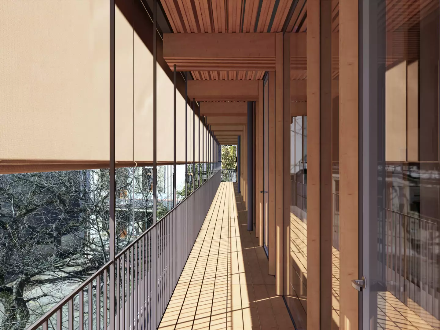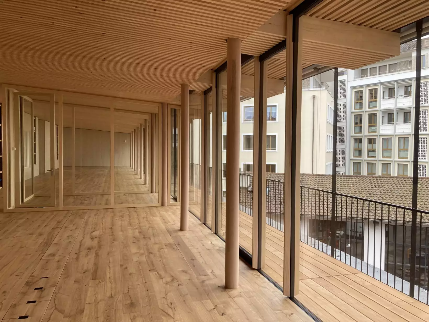 Propriétaire de plus de 340 hectares de forêts, la CMS connaît les réalités de la filière bois et s’engage activement pour la valorisation des ressources régionales. En tant qu’actionnaire de Fagus Suisse SA, elle soutient la promotion du hêtre, essence locale à fort potentiel structurel. Pour ce projet signé Herzog & de Meuron, le bois de hêtre régional a été choisi comme élément porteur principal, utilisé notamment dans les plafonds massifs en planches empilées et dans l’aménagement intérieur.