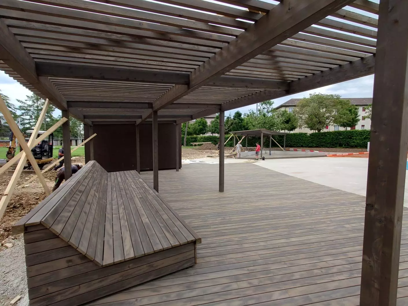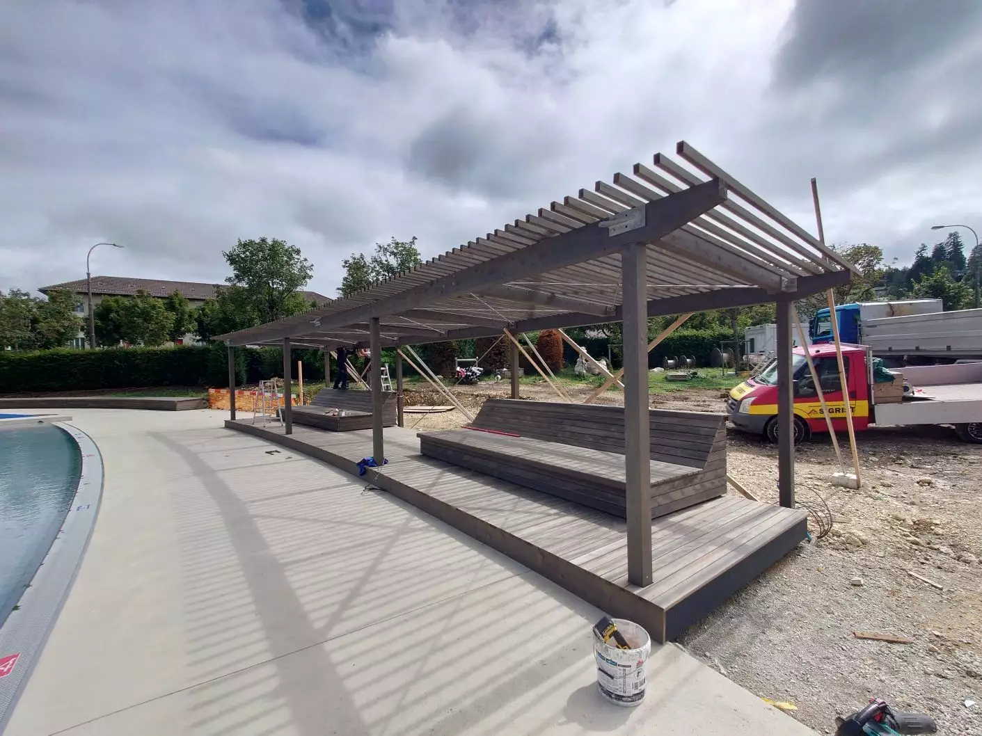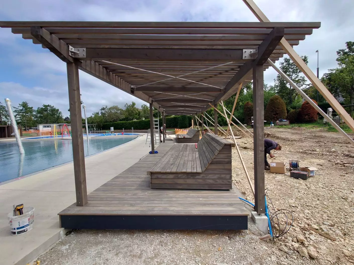 Le Groupe Corbat a fourni l’ensemble des structures bois des pergolas et a conçu et fabriqué l’ensemble des mobiliers de détente.
