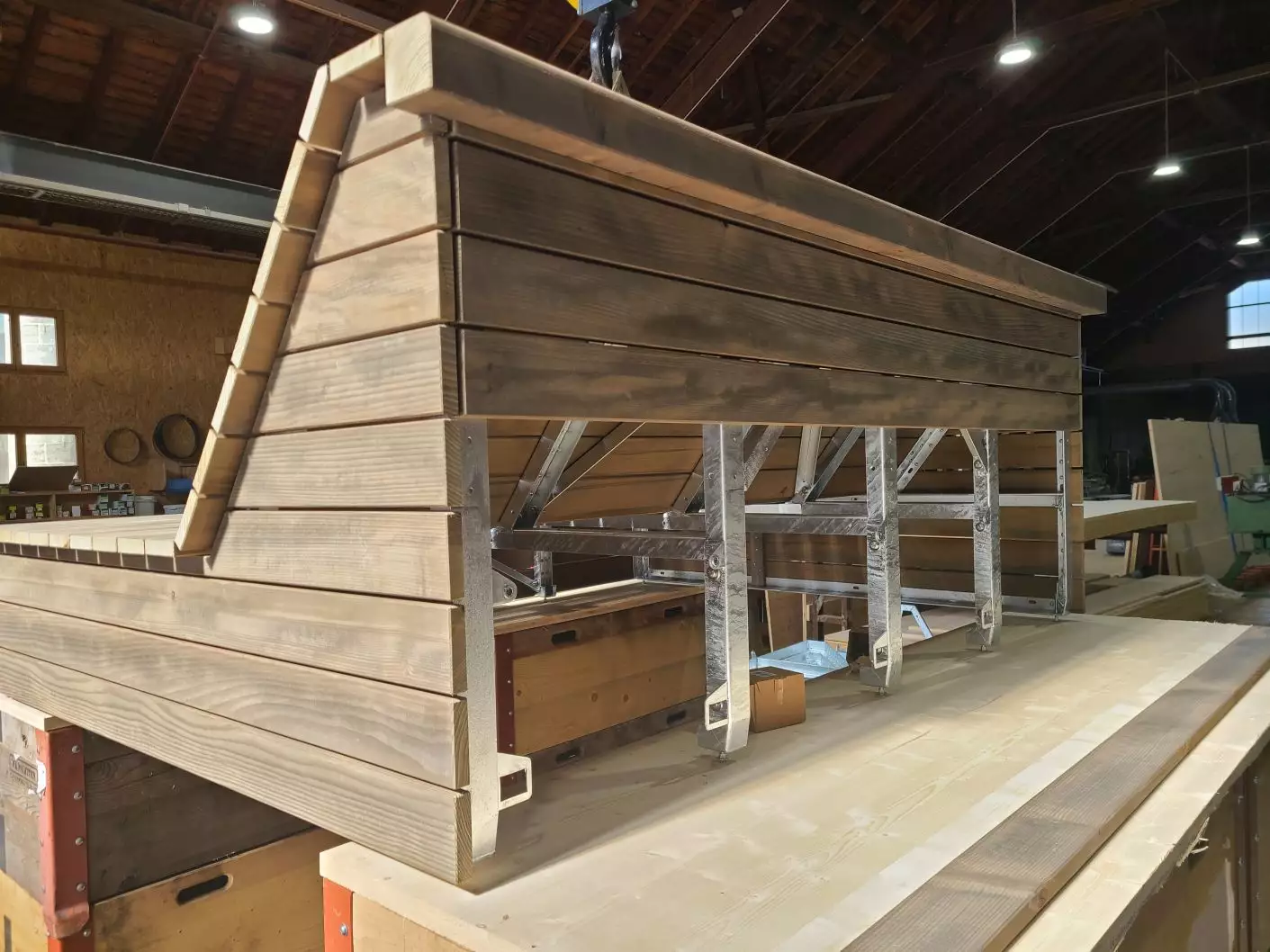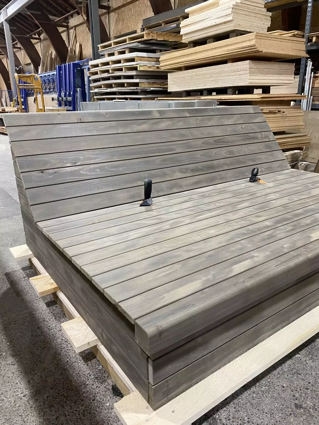 Une finition de couleur "gris antique" donne leur caractère unique et chaleureux aux assises. Ce traitement met en valeur le veinage et la beauté naturelle du bois, tout en renforçant la résistance du bois aux UV.
